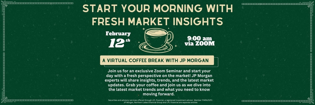 Join us for an exclusive Zoom Seminar and start your day with a fresh perspective on the market! JP Morgan experts will share insights, trends, and the latest market updates. Grab your coffee and join us as we dive into the latest market trends and what you need to know moving forward.